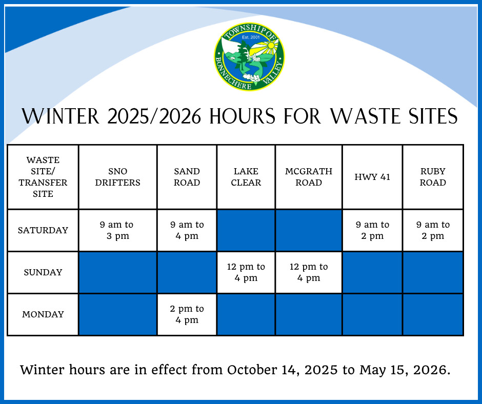 NOTE: The Sand Road Waste Site will be closed on Monday, February 16, 2026 for Family Day.